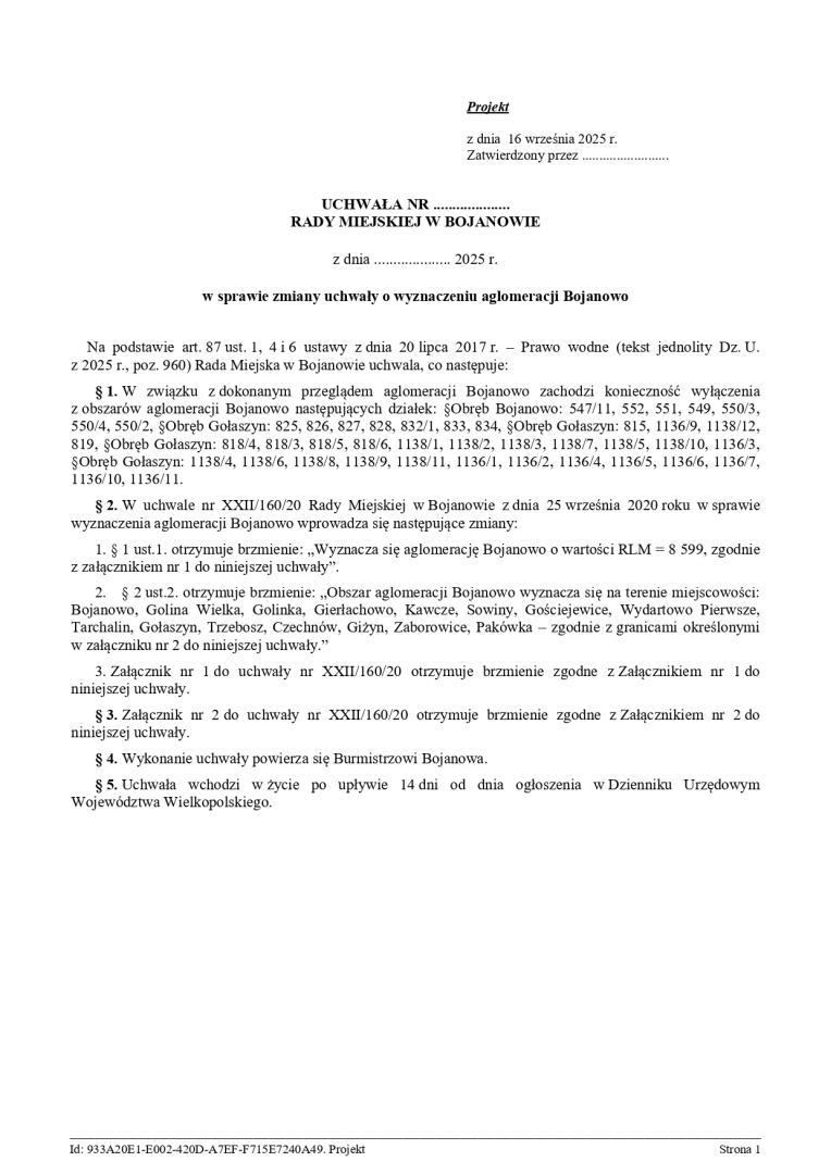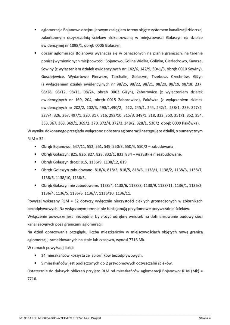 wyłączono z aglomeracji część działek położonych w obrębach Bojanowo i Gołaszyn (m.in. działki nr 547/11, 552, 551, 549, 550/3, 550/4, 550/2, a także kilkadziesiąt działek w Gołaszynie),