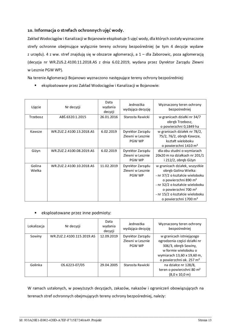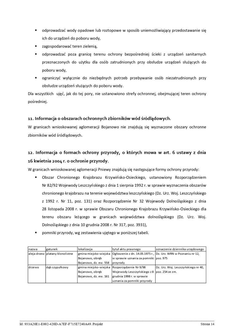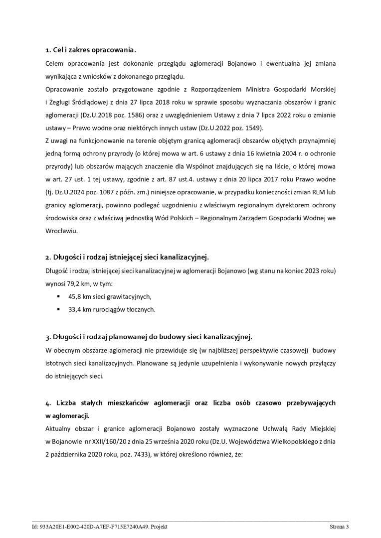 ustalono zaktualizowany obszar aglomeracji, obejmujący miejscowości: Bojanowo, Golina Wielka, Golinka, Gierłachowo, Kawcze, Sowiny, Gościejewice, Wydartowo Pierwsze, Tarchalin, Gołaszyn, Trzebosz, Czechnów, Giżyn, Zaborowice i Pakówka.