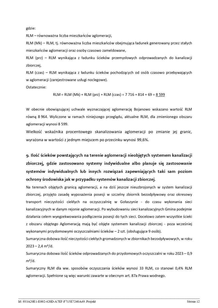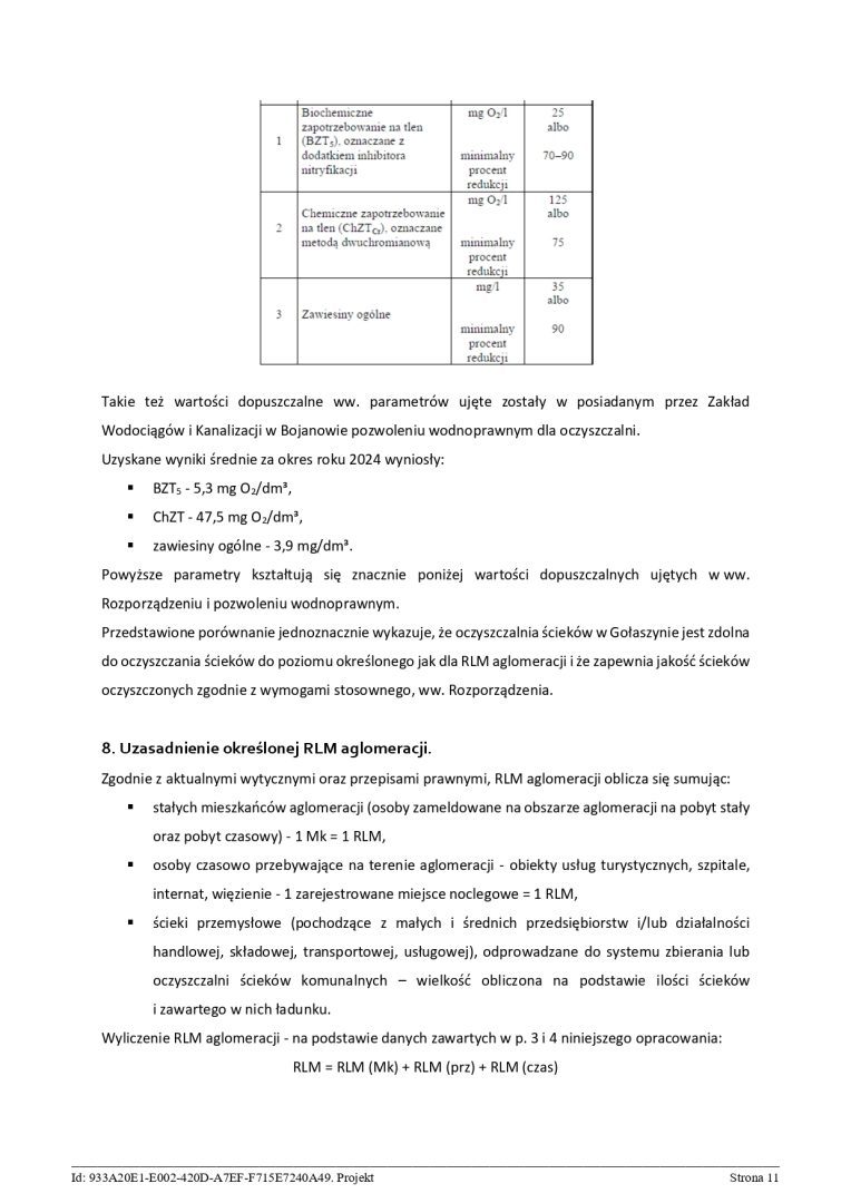 określono nową wartość RLM aglomeracji na poziomie 8 599 (dotychczas było to 8 964),